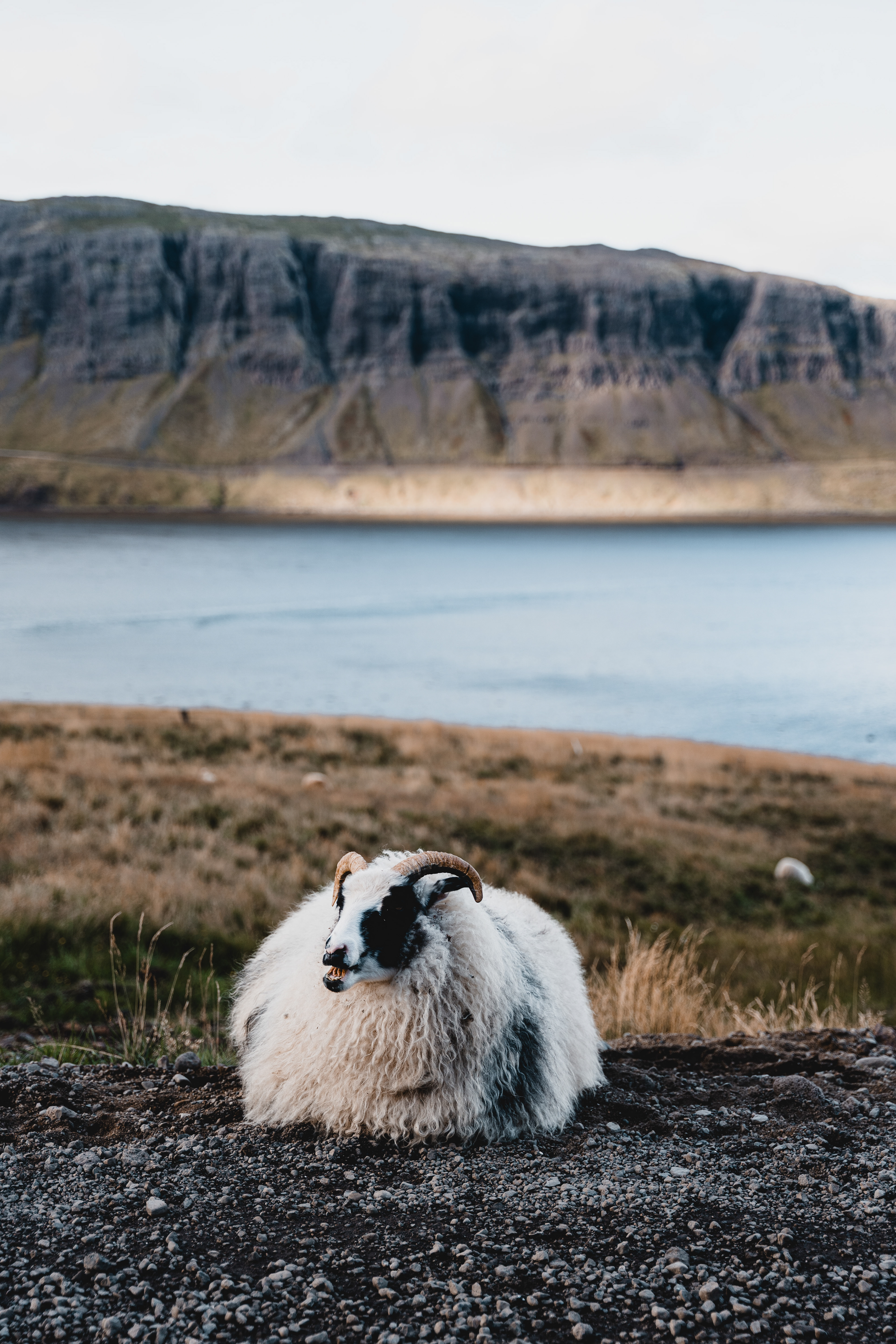 Icelandic sheep. Their wool is best known as traditional Icelandic sweater material.